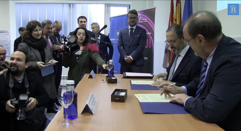 En nuestro Centro hemos presenciado hoy día 23 de enero cómo se plasma efectivamente la colaboración entre dos "Gigantes", la Junta de Castilla y León y Red Eléctrica de España. Después de sesiones de trabajo interminables por ambas partes, en los meses precedentes, se ha firmado el convenio de FP Dual por el que nuestros alumnos de Centrales Eléctricas recibirán parte de las enseñanzas en instalaciones de Red Eléctrica de España (REE).