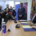 El acto de la firma ha seguido con la visita del Consejero de Educación de la Junta, D. Fernando Rey, y el Director corporativo de Recursos Red Eléctrica de España, D. Ángel Luis Mahou, a nuestras aulas del Ciclo Formativo de Grado Superior de Centrales Eléctricas, compartiendo unos momentos entrañables de charla con alumnos y profesores, con los que observaron los modernos equipamientos con que contamos.