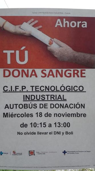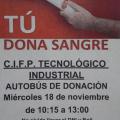 El miercoles 18 de Noviembre, desde las 10:15 hasta las 13:00, acudirá al aparcamiento de nuestro centro un autobús de donación de sangre.